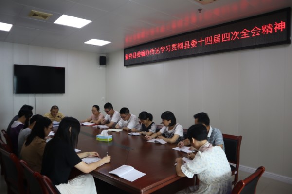 8月9日上午,新兴县委编办召开专题会议,传达学习贯彻县委十四届四次全会精神。县委组织部副部长、编办主任何林健主持会议并作讲话,办全体党员干部职工参加。